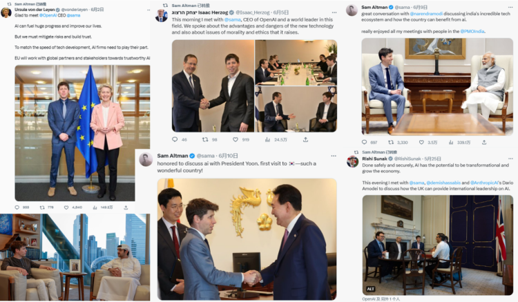 據媒體統計,在幾周的時間裏,他驚人地訪問了22個國家,始終保持着謙遜的姿態,友好且熱情,向各國領導人們宣稱自己支持對人工智能進行監管,但同時也表達出對於監管過度的擔憂。
