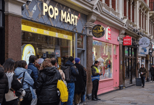 ▲ 在美國對華加徵關税的背景下,中國潮玩企業泡泡瑪特卻逆勢而上,其最新推出的LABUBU 3.0系列在全球引發搶購狂潮,消費者在各國門店大排長隊。