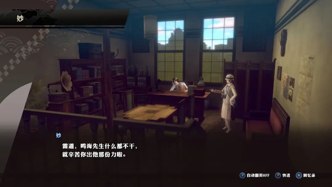 作為偵探,玩家需要與形形色色的人物對話、套話,收集線索。這些角色有時會戲弄、為難雷道,有時又因挫折流露脆弱,玩家在冒險之餘,也能看到大正時代的芸芸眾生。