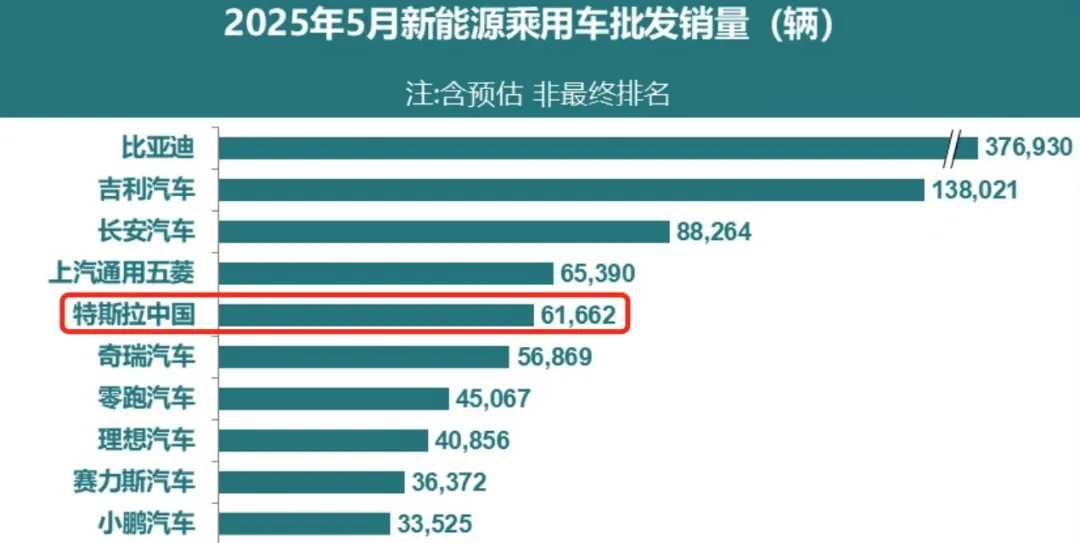 圖/2025年5月新能源乘用車批發銷量(含預估)