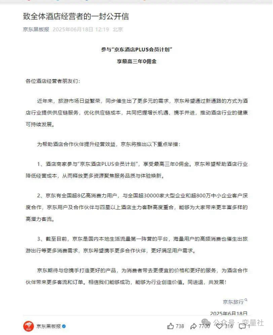 面對行業的普遍痛點,京東高調殺入酒旅新戰場,跟進了“致全體酒店經營者的一封公開信”,表態要讓任何平台都沒有能力二選一。