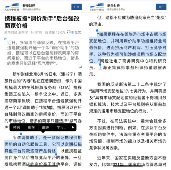 而且已經有律師認為,攜程通過“調價助手”擅自降價的行為,屬於“沒有正當理由”情況下,在交易時附加不合理條件。