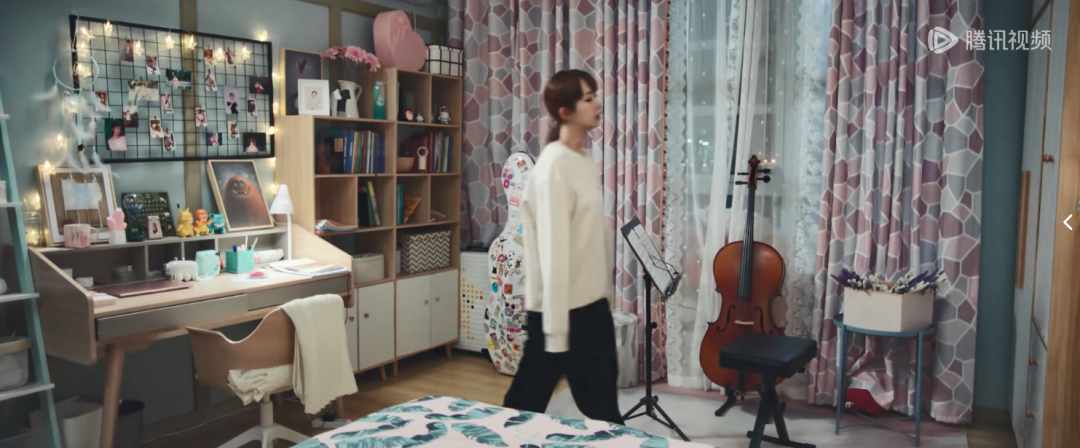《餘生請多指教》裏大提琴手林之校的房間,映入眼簾的就是常規女主房間佈置的三要素:燈條、網格照片、捕夢網。