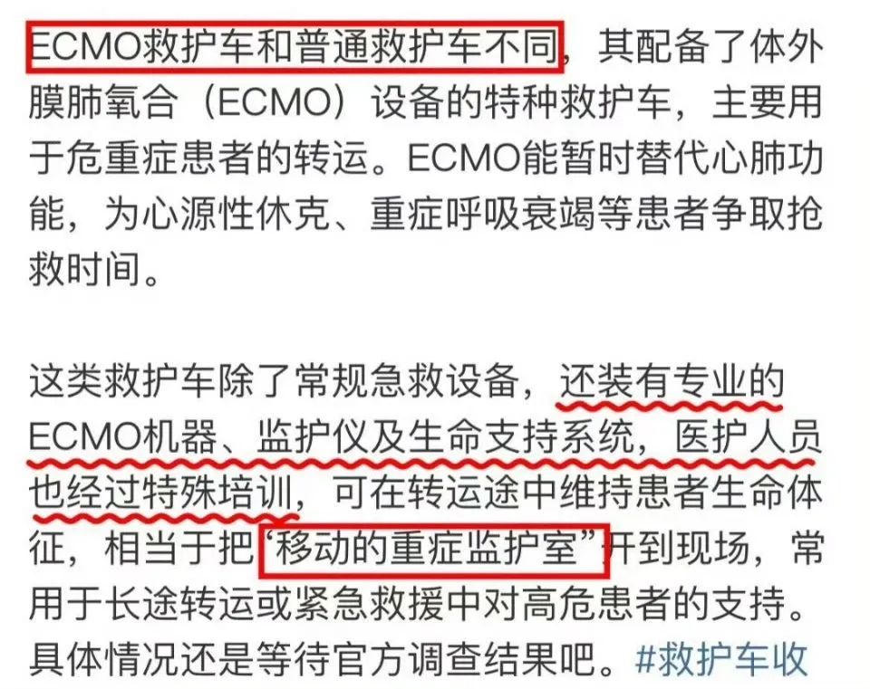 唐先生小孩的情況,也不是小區轉運到附近醫院,而是連夜從南昌全程開到上海,危重病人ecmo葉克膜全程開機,然後主治醫生和護士全程陪同,和對接的醫院醫師對接。