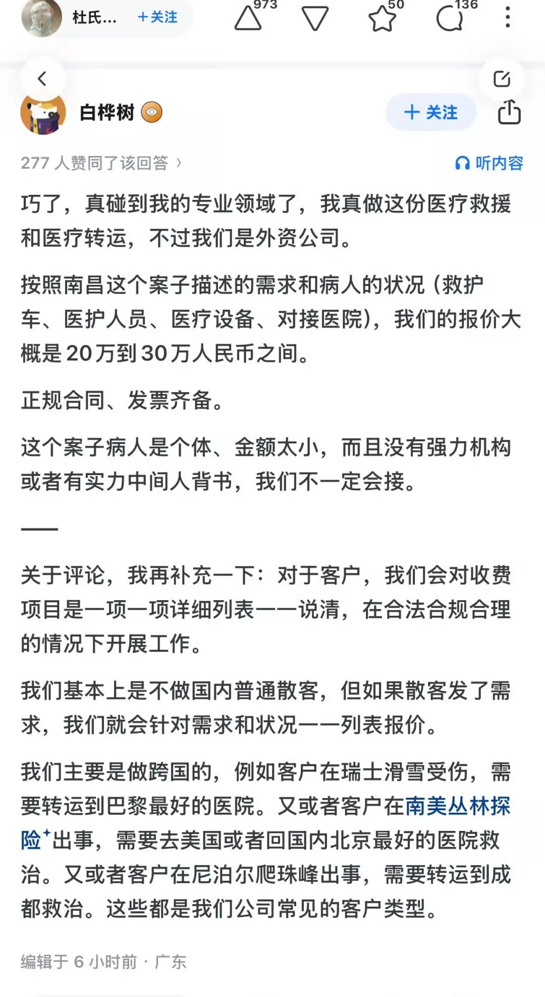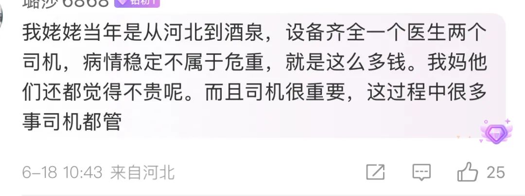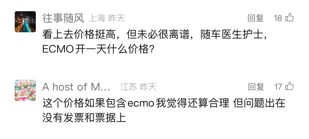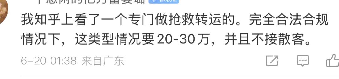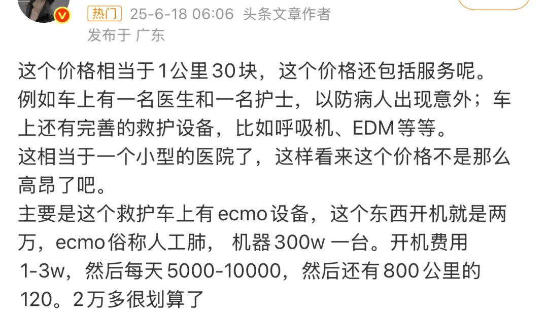 網友説看到有專門做搶救轉運的,這類情況的費用20-30萬。