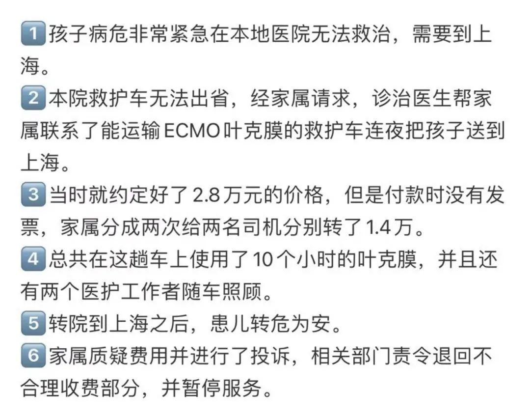 救護車從南昌轉運重症兒童到上海收費28000, 家屬: 能不能便宜點?_風聞