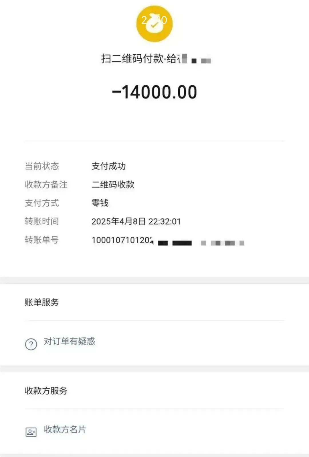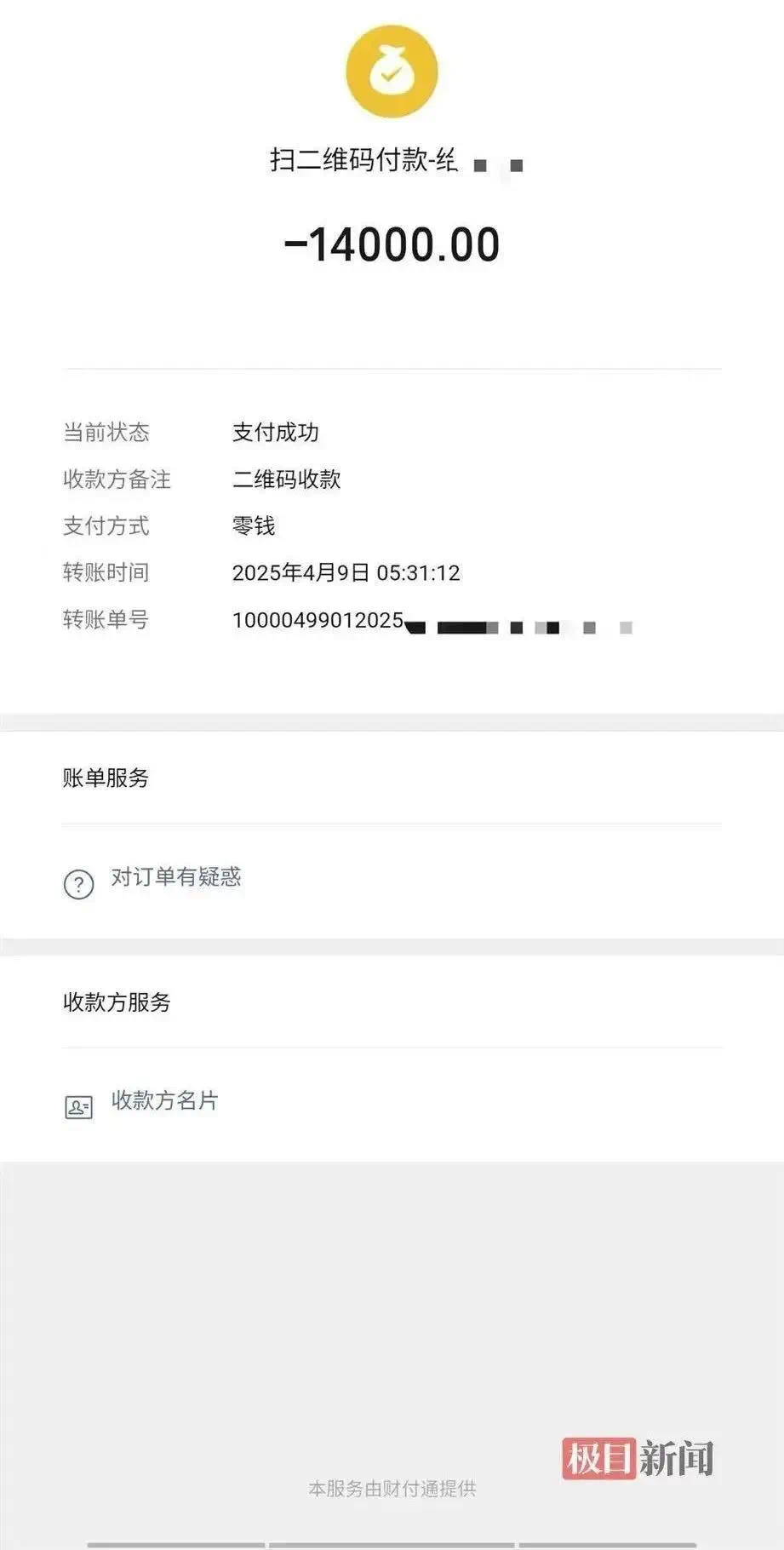 “當時聽到這個費用,我們是很震驚的。”唐先生表示,當時問怎麼這麼貴、能不能便宜點,兩名司機都沒説話。因孩子病情緊急,他就先通過微信轉賬向其中一位司機支付了14000元。