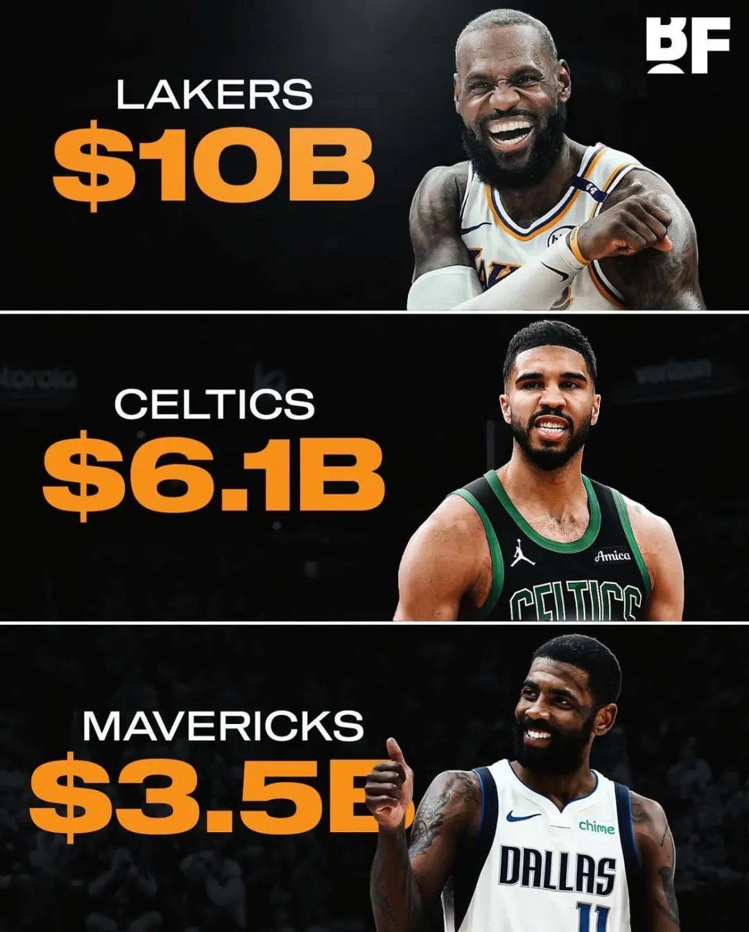 100億美元的估值,不只是湖人的專屬,而是一個信號,凱爾特人、尼克斯、勇士、熱火這類歷史底藴強、城市吸引力大的隊伍,身價可能都將迎來一次「估值新生」。