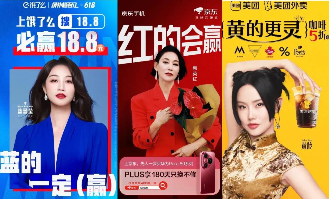 今年618還有一個顯著變化:**即時零售平台首次深度參與其中成為了大促的重要角色。**美團、餓了麼、京東"紅黃藍"三大平台延續了上半年外賣市場的激烈競爭態勢,將戰火全面引燃至618大促。從代言人諧音梗營銷到資源投入規模,各平台對即時零售業務的重視程度都達到了前所未有的高度。