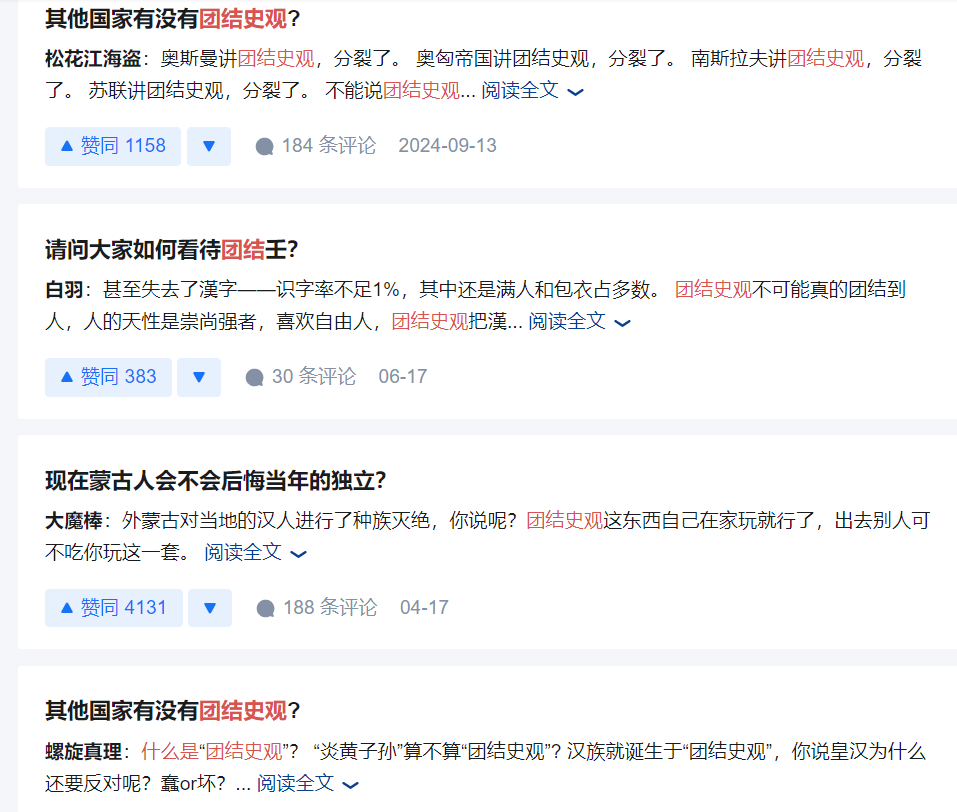 當今網上,很多民族主義者,尤其是皇漢,非常反對團結史觀。