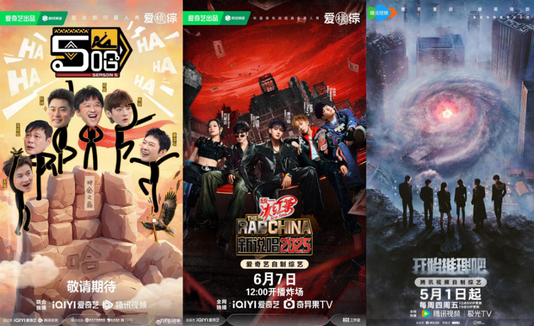 **綜藝領域,綜N代與新綜藝齊發力,類型更多元、戰況更激烈。**手握《五哈5》《新説唱2025》《種地吧3》三大頂級IP的愛奇藝,還推出了《亞洲新聲》《微笑一號店》《健康不摸黑》等覆蓋音綜、經營真人秀、脱口秀等類型的新綜藝,形成全方位吸睛態勢。騰訊視頻拿出了《開始推理吧3》《五十公里桃花塢5》《曠野星球》的組合牌,也做到了新老IP均有、類型題材多元。芒果TV的《乘風2025》借收官再攬一波流量,優酷綜藝最亮眼的當屬時隔三年迴歸的《麻花特開心2》。
