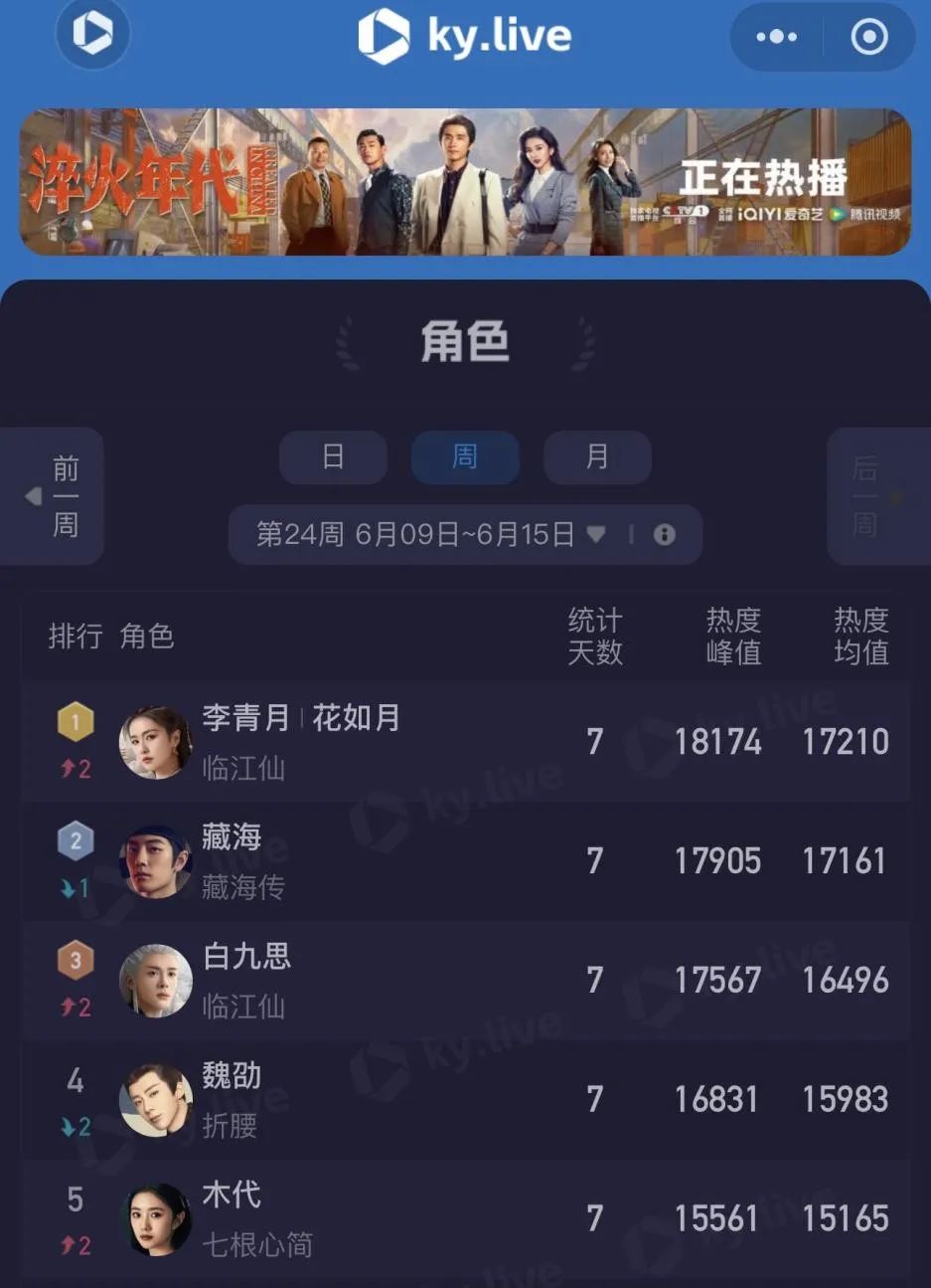 再者,戀愛腦上頭、沒苦硬吃的仙俠女主早已被厭棄,《臨江仙》的男女主主打一個“清醒”,花如月的“白切黑”更是讓無數觀眾津津樂道。畢竟天真浪漫的李青月才是仙俠劇的常規打開方式,誰曾想一切不過是她的謀算佈局,“女強”爽感拉滿。劇播後,花如月(李青月)也快速登上了各大數據平台角色熱度榜首位,市場喜愛度可見一斑。