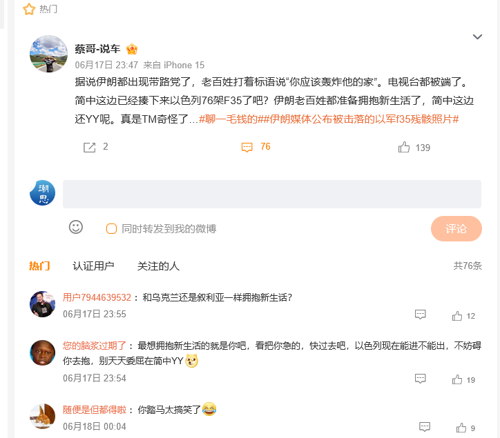 不過筆者建議,諸位自詡正道世界衞士的精緻利己主義者們,還是多看看這次以色列到底是怎麼把這些“保衞以色列”的伊朗人用完就扔的吧。