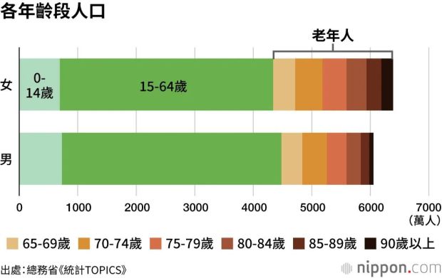 而日本2024年統計,65歲以上的老人有3625萬,佔總人口29.3%,超過中國一倍有餘。