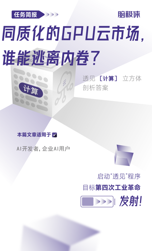 GPU雲市場,還處於方興未艾的發展初期,各行各業都需要上雲用算來進行AI訓推,有巨大的市場空間等待打開,不應過早跌入同質化、內卷化的泥潭。
