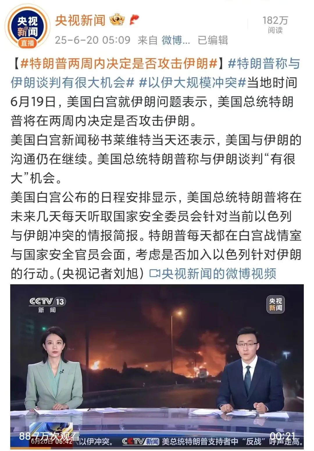 這還不是以“兩週內決定”為表象的,而是在這之前特朗普表示再等48小時內決定是不是攻擊,就看出來了——美國要是真的準備萬全、雷霆出擊,馬上把伊朗給碾成齏粉,哪輪得着特朗普在這猶猶豫豫?