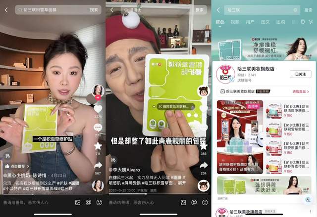 此外,許多品牌也將此次平台IP共創作為加速新品破圈的機會。哈三聯聯動多圈層達人推廣哈三聯積雪草面膜等新品,快速擴大新品曝光,同步配置達人進播,助力官方直播間銷售成績提升。