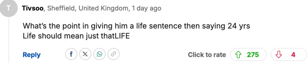 法官的判決讓人拍手叫好,而對於至少24年的刑期,網友們卻一致表示——太少了: