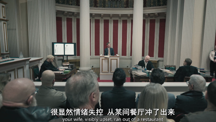 比如,在審判席上,佈景的紅,象徵着在這個空間裏湧動的情緒。