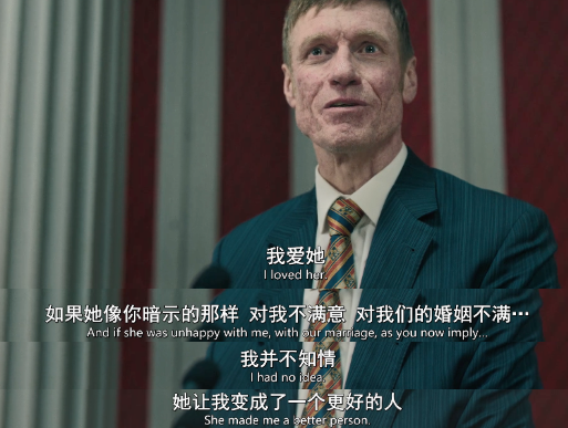 在殺妻案時,被告丈夫身後的紅色,就已經告訴觀眾,他也身處血泊之中,他並不是全然清白的。
