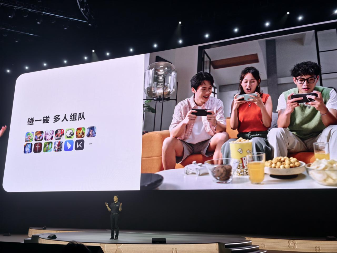 除此之外,已經被超過 9000 個應用接入的「碰一碰」能力,在鴻蒙 6.0 中也解鎖了更多玩法。它不再僅僅是功能的觸發,更像是一種社交語言和效率工具的融合,例如你不僅能「一碰」分享相冊裏的多張「賽博記憶」,還能和朋友「一碰」拉起遊戲開黑,甚至是手機觸碰鴻蒙筆電屏幕,就能觸發跨設備的「文件空投」。更關鍵的是,這個能力已經向生態夥伴開放,WPS、剪映、美圖秀秀這些國民級 App 的加入,讓「碰一碰」的邊界再次拓寬。