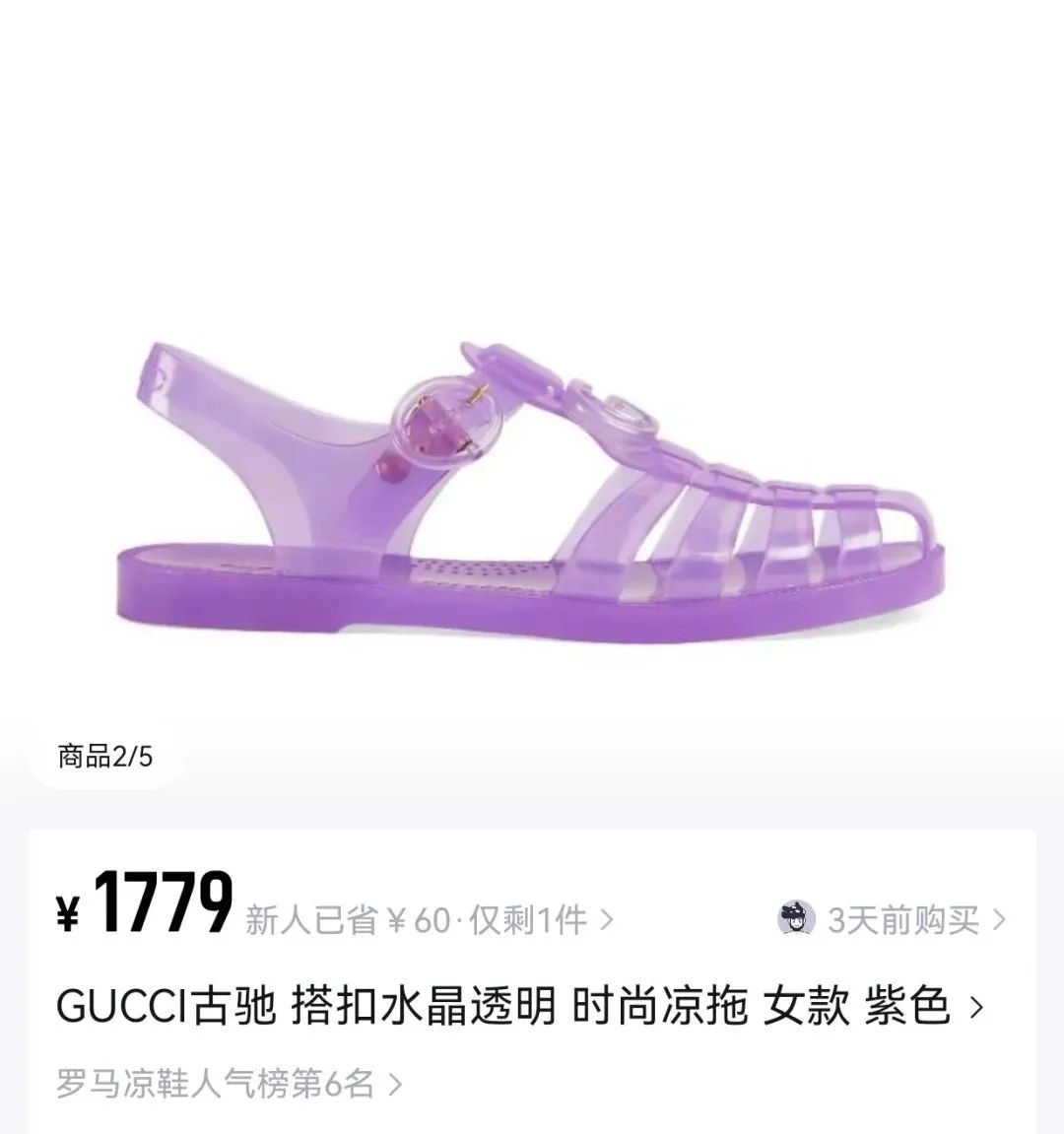 還有Gucci的水晶玻璃涼鞋,透明橡膠材質,2000塊的價格,雖然設計簡單,卻有讓人夢迴童年的效果。