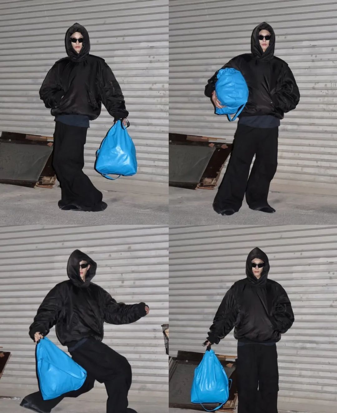 而對於“垃圾袋”巴黎世家也是有執念的。2022年巴黎世家首發過一款命名為 Trash Pouch 的大袋子,靈感來自垃圾袋,標價 1.2 萬元(1790 美元)。