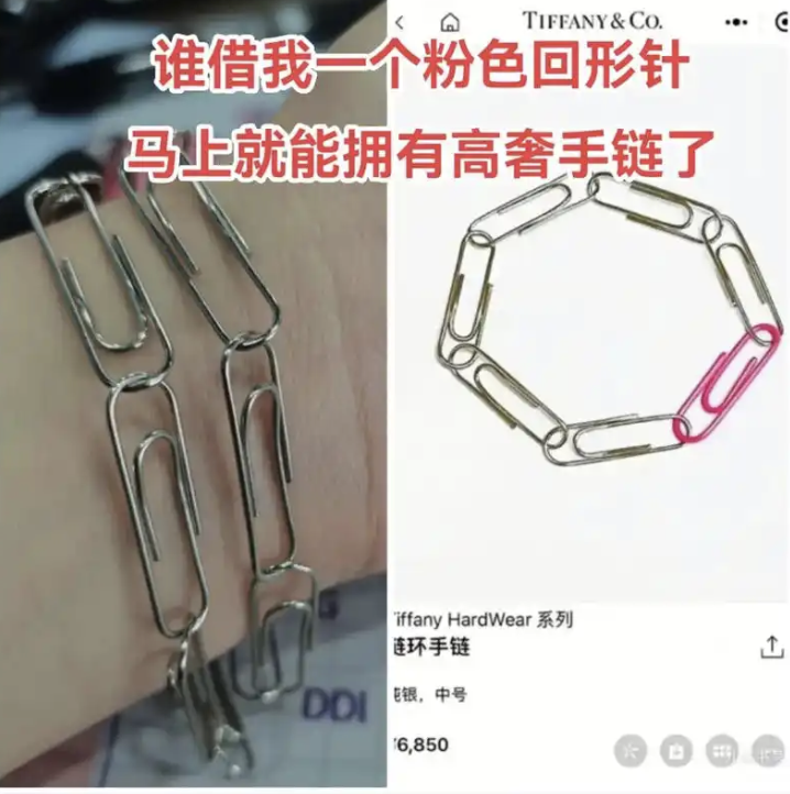 很多類似的產品都會成為網絡熱議的話題,比如蒂芙尼的回形針手鍊,6000多的手鍊僅僅是用回形針製作而成。