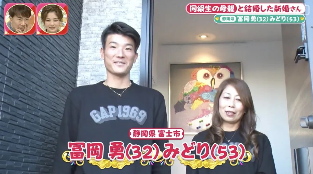 就在最近播出的這一期節目中,節目組邀請到了一對來自靜岡縣富士市的不太尋常的新婚夫妻,他們就是有21歲年齡差的富岡勇(32歲)和他53歲的太太みどり。