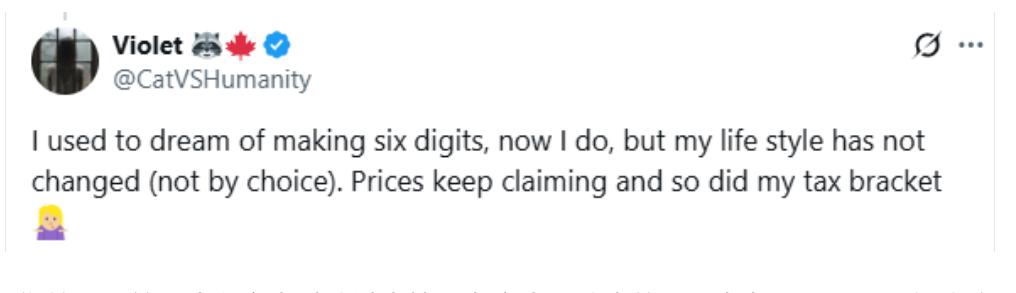 “我以前的夢想是年薪6位數,如今真的實現了,但我的生活卻沒有絲毫改善……不是我不想,而是物價漲個不停,税也越來越高。”