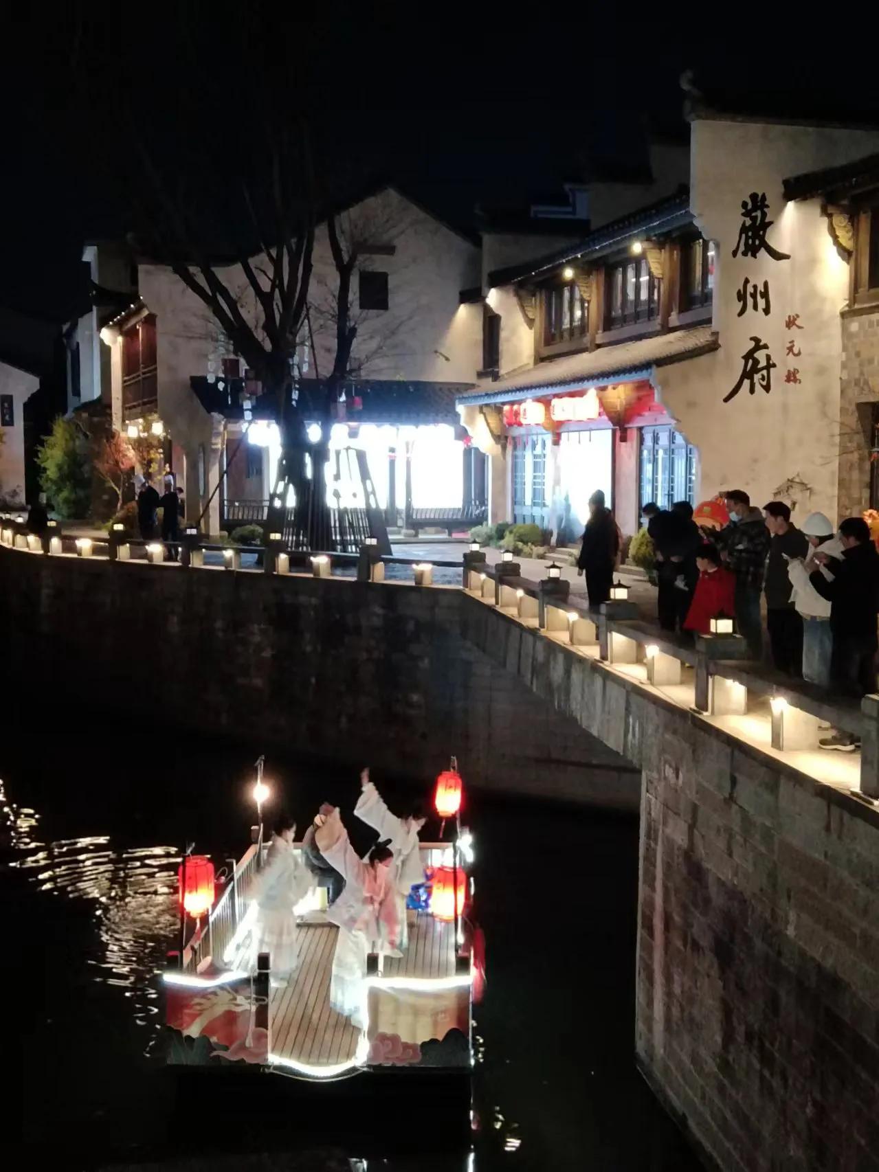 ( 嚴州古城 十字街 月帶河夜景 遊船表演 )