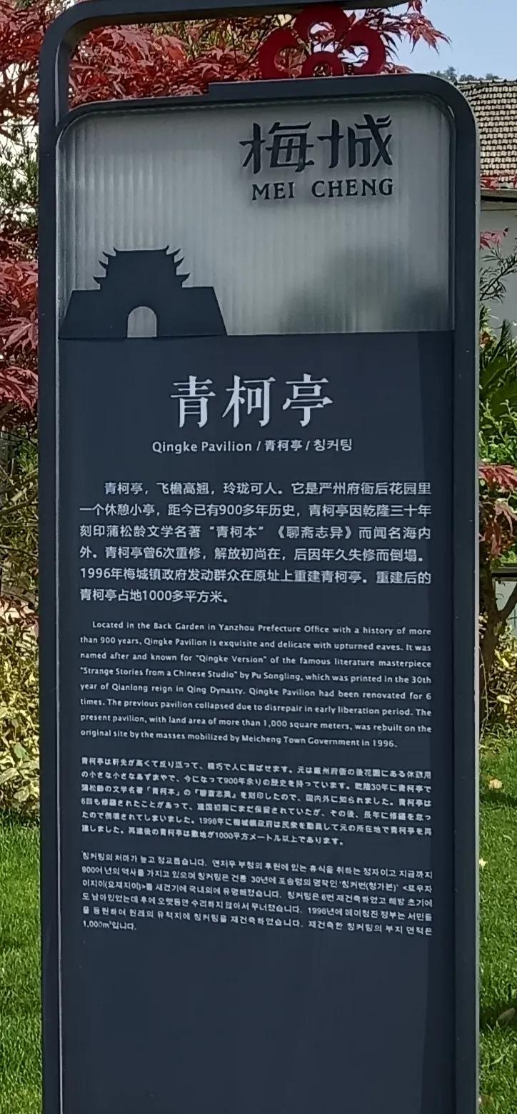 所以,今天到嚴州府古城(梅城)旅遊的人們,都不妨趁機有時間到達嚴州古城旅遊的時候,去走訪一下嚴州府後花園(原)所在的《青柯亭》,去感受一下900年前在嚴州府衙後花園《青柯亭》中蒲松齡《聊齋志異》木刻本誕生,與開始廣泛傳播(印刷)那一刻的情景。