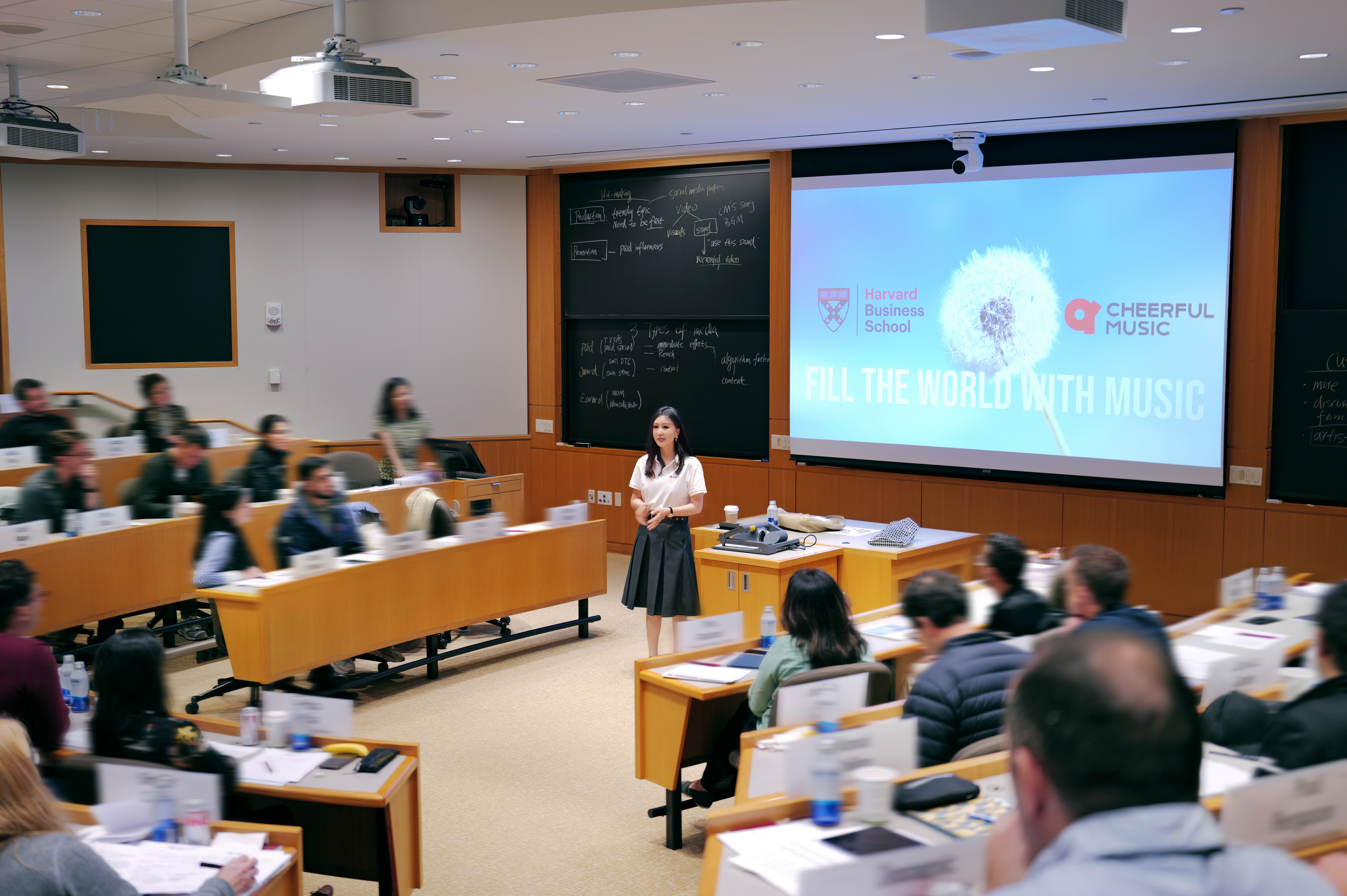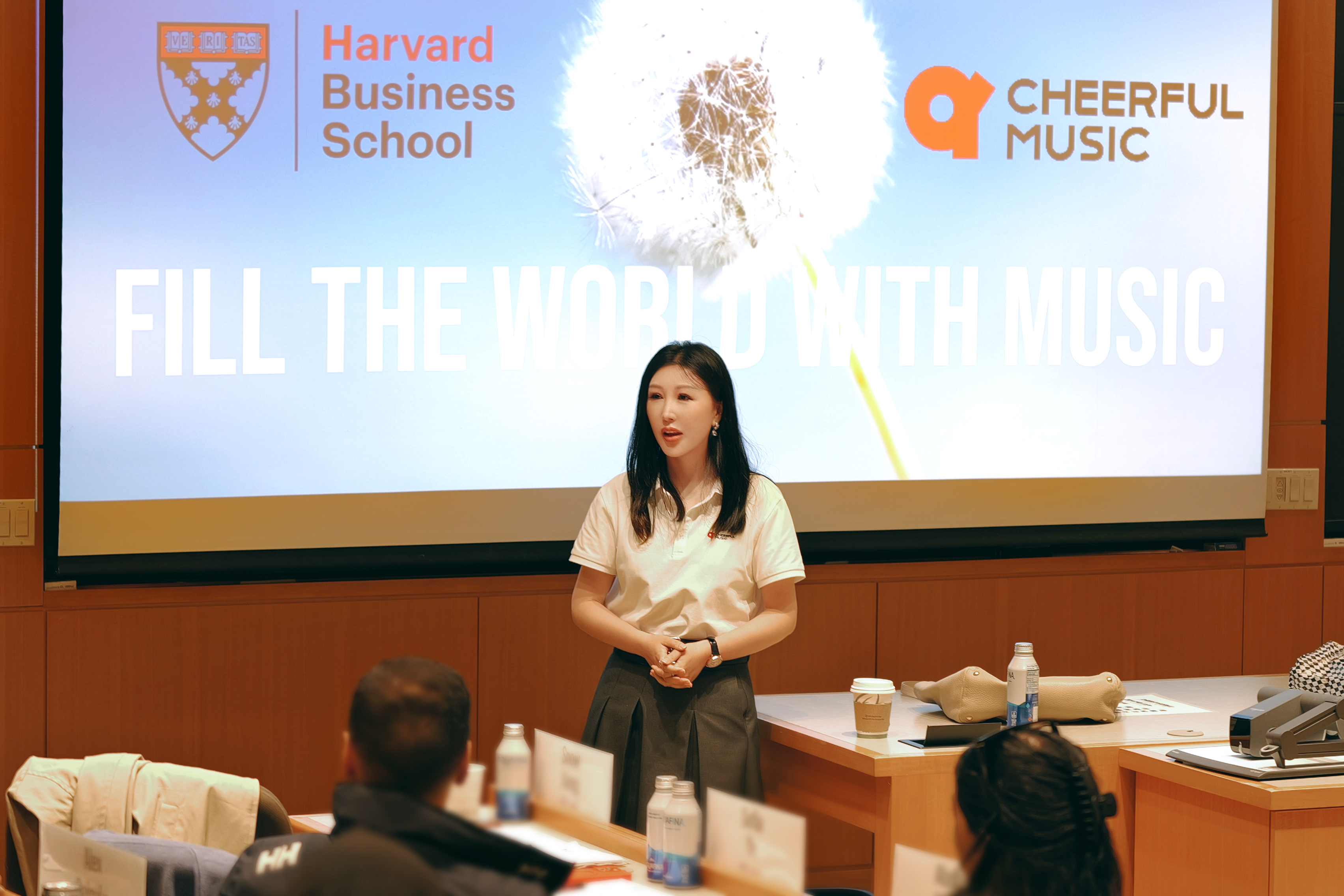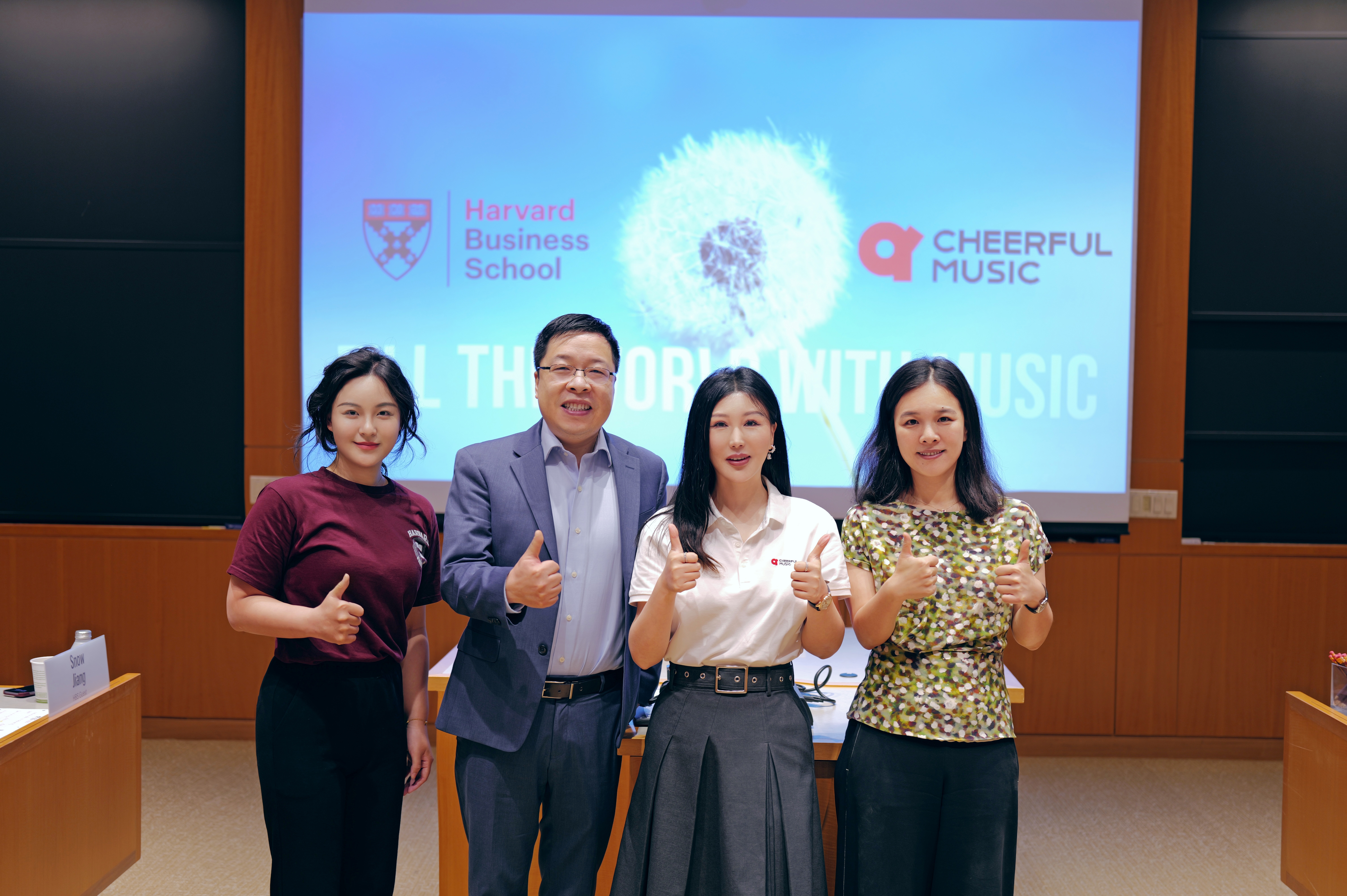 美國時間 6月19日,青風音樂(Cheerful Music)創始人兼CEO、哈佛商學院校友蔣雪兒Snow.J應邀走上哈佛商學院講台,作為特邀案例嘉賓面向來自80多個國家的137位同學,分享了青風音樂(Cheerful Music)的數字音樂商業模式與創業管理經驗,以及自己的創業歷程與行業洞見。