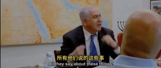 內塔尼亞胡正在暴躁地怒吼、拍着桌子、歇斯底里發泄情緒,完全失去了他前幾天志得意滿、勝券在握、睥睨天下的樣子……這神情倒是和著名電影中的某個場景很像。