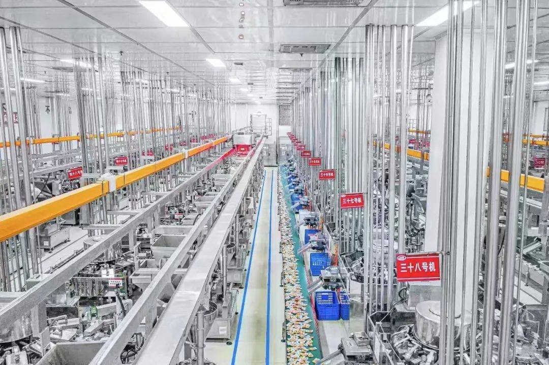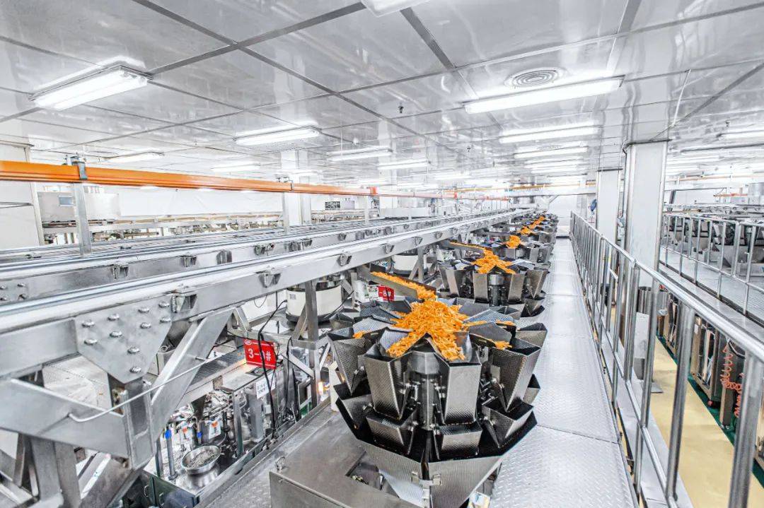 如杏林工廠裏的衞龍魔芋產線,十年間已歷經了七代更迭。該產線通過顛覆性設計,將“溶脹—成型—調味—封裝”四大核心工序濃縮在1.6萬平方米的雙層立體空間中,較第六代產線佔地面積縮減一半,產能卻實現翻倍,效率提升達80%。