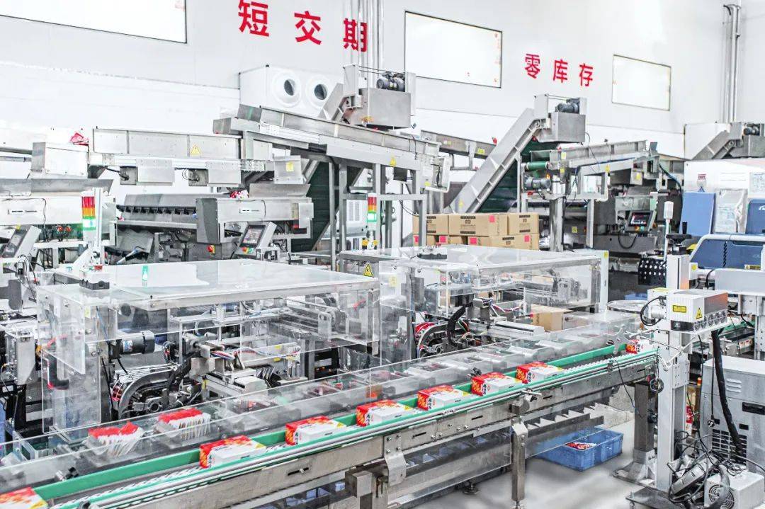 衞龍自主研發的全自動化生產設備,實現“全過程、無縫隙、智能化”生產線,自動在線監測系統100%全檢替代人工抽檢,工業IOT、AI視覺系統、漏油和異物X光機、在線克重剔除秤,質檢不良品攔截率達到100%,效率提升40%。