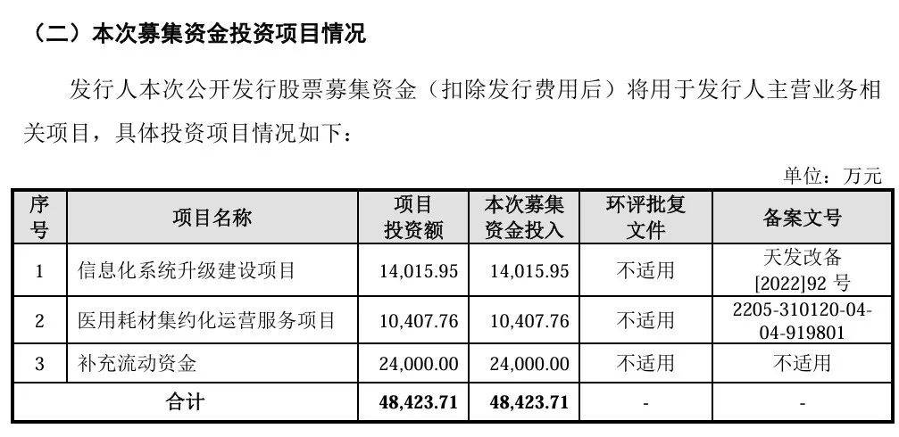 根據募資規劃,其中1.4億元用於信息化系統升級建設項目,1億元用於醫用耗材集約化運營服務項目,2.4億元用於補充流動資金。募資僅能緩解部分流動性壓力,卻難以根治“高負債運營”的模式弊端。