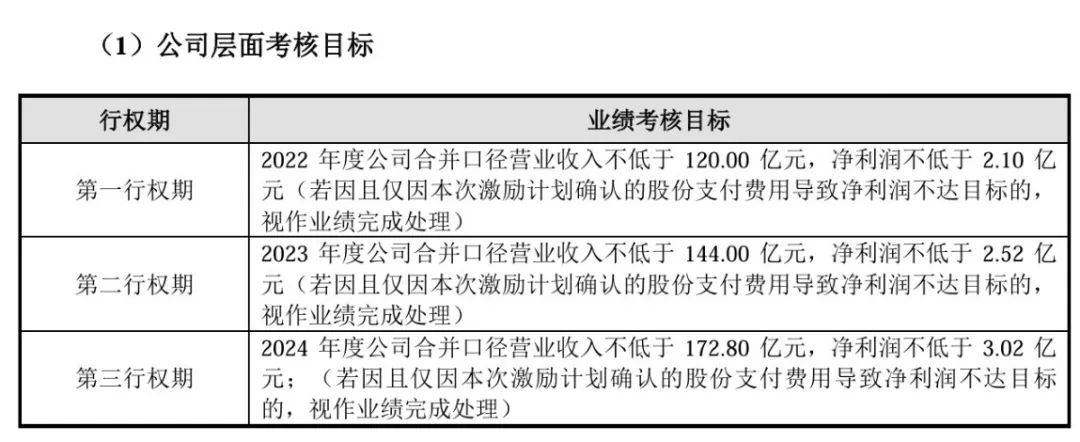 原考核要求2022年營收不低於120億元、淨利潤不低於2.1億元,但實際完成118.8億元營收與1.89億元淨利潤,促使公司將首年目標下調至營收108億元、淨利潤1.89億元。