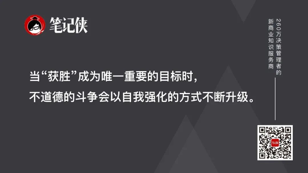 **當“獲勝”成為唯一重要的目標時,不道德的鬥爭會以自我強化的方式不斷升級。**當每個人都在為自己的信念而戰,卻沒人能達成共識時,整個系統便瀕臨內戰或革命的邊緣。