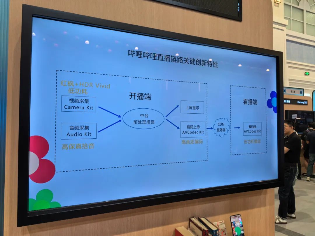 我們從 HDC 展區展出的講解內容裏瞭解到,藉助鴻蒙提供的 Camera Kit 工具,B站可以直接在華為手機、平板等多個設備上快速調用相機,獲得保留高光和陰影細節的原始視頻流。