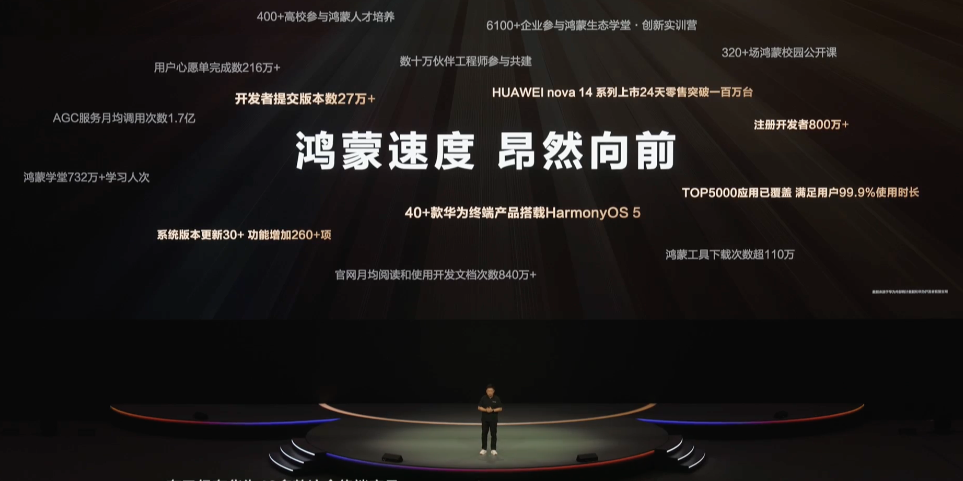 到今天,已經有40多款華為終端產品搭載鴻蒙5,系統功能更新260多項。