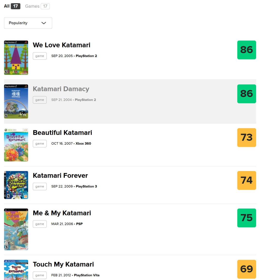 在MC上收錄有17款《塊魂》相關遊戲,包括在2018年和2023年先後推出的兩部高清重製版