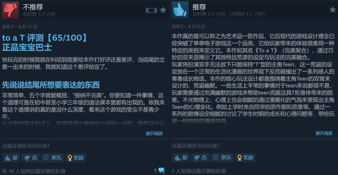 但輪到《To a T》這樣“小孩子也能玩”的實驗性遊戲,事情就好像又變得有爭議了。