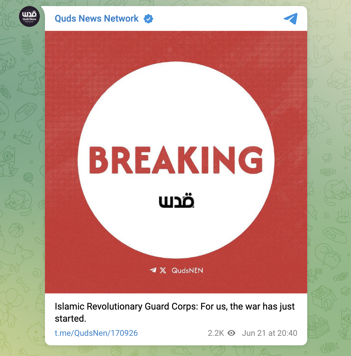 伊朗伊斯蘭革命衞隊剛剛在Telegram上發佈了以下內容:截圖