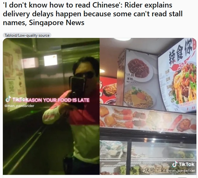 此外,他還提到,這還讓新加坡的外賣小哥也很困惑,他以該網站社羣裏另一個帖子為例:一位外賣小哥解釋為什麼送餐晚了的原因:他看不懂華文。