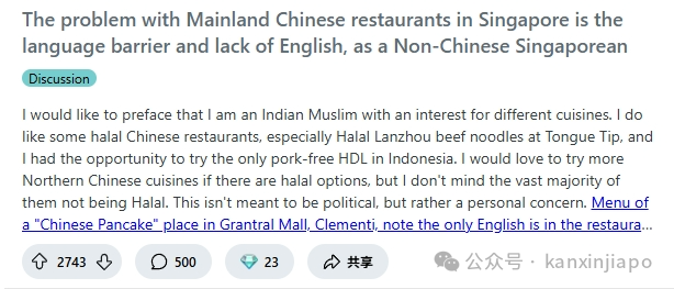 看新加坡:印度裔網友投訴新加坡中餐館的“中文霸權”_風聞