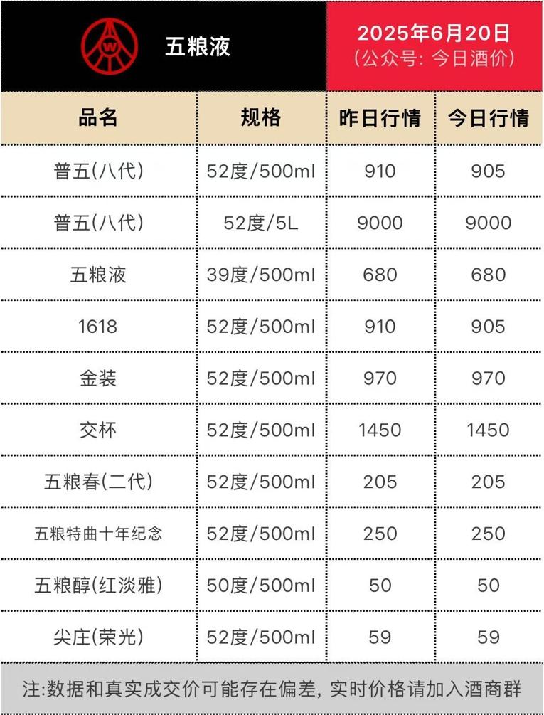 從終端批發價來看,根據“今日酒價”數據,2025年6月20日,普五的批發價為905元,此前數據也基本都在900元以上。