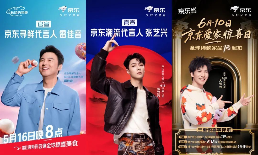 作為618的“創造者”,京東618期間直接官宣了多個代言人,包括張藝興、大張偉、李晟、雷佳音、JDG成員等,不斷引起粉絲們的關注和推崇。