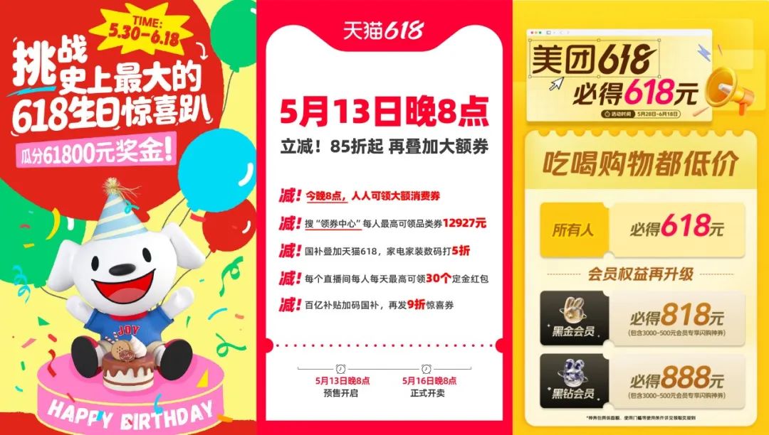 至此,今年618最熱鬧的電商平台戰事,以“貓、狗、袋鼠”三家諧音梗共同促成。