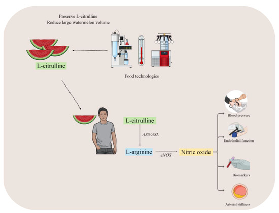 Volino-Souza, M., de Oliveira, G.V., Conte-Junior, C.A., Figueroa, A., & Alvares, T.S. (2022). Current Evidence of Watermelon (Citrullus lanatus) Ingestion on Vascular Health: A Food Science and Technology Perspective. Nutrients, 14(14), 2913.
